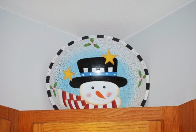 These three snowmen sit above the refrigerator. They find a home somewhere within the house every year no matter what since they were painted by my mother-in-law. She is missed dearly.